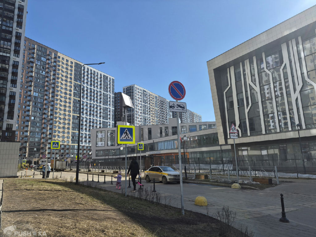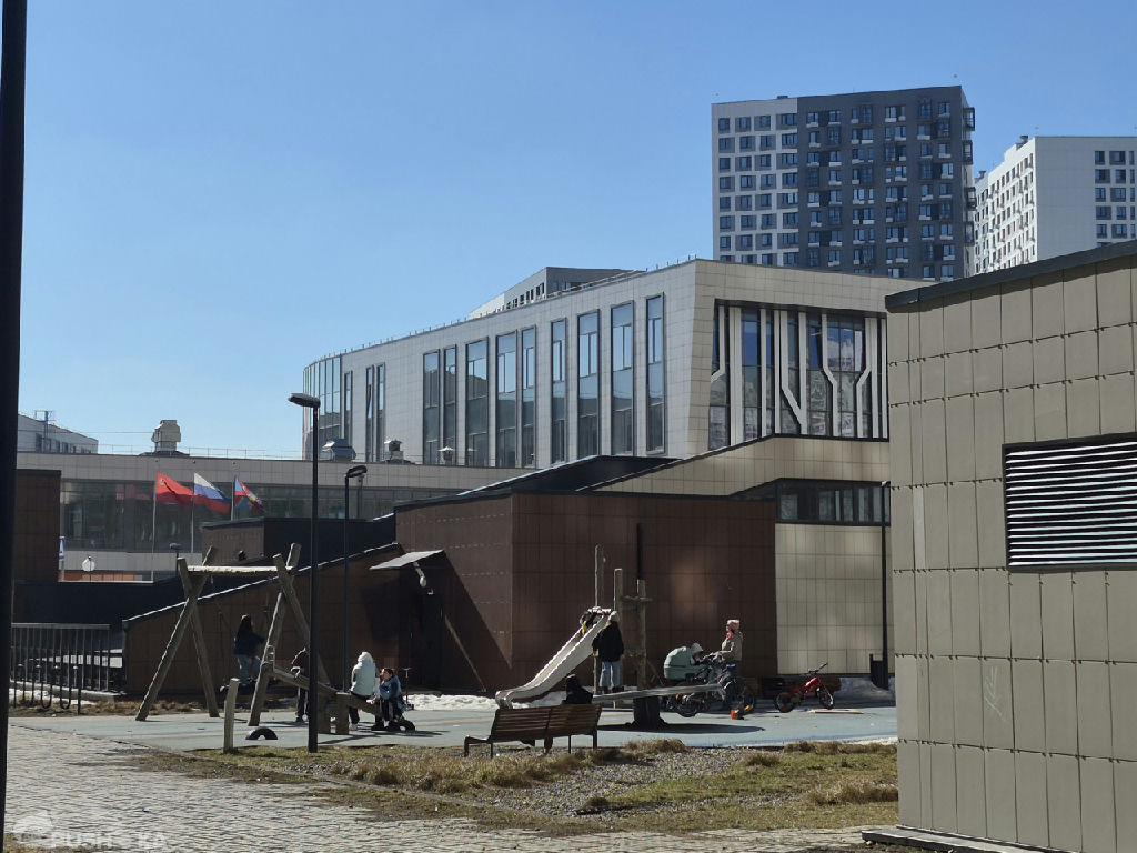 Школа, детский сад во дворе. Первые этажи -супермаркеты, коммерческая инфраструктура.
